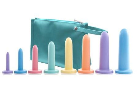 Dilators: Intimate Rose and Soul Source both make great dilator sets in a variety of sizes. These tools are ideal for working on an all over stretch especially with scar tissue postpartum or to help decrease muscle spasm. Starting with a size that is tolerable to insert, slowly work your way up in size until you have reached the desired size (typically the size of a partner or toy you would like to use). [Work with you therapist about a specific dilator plan]